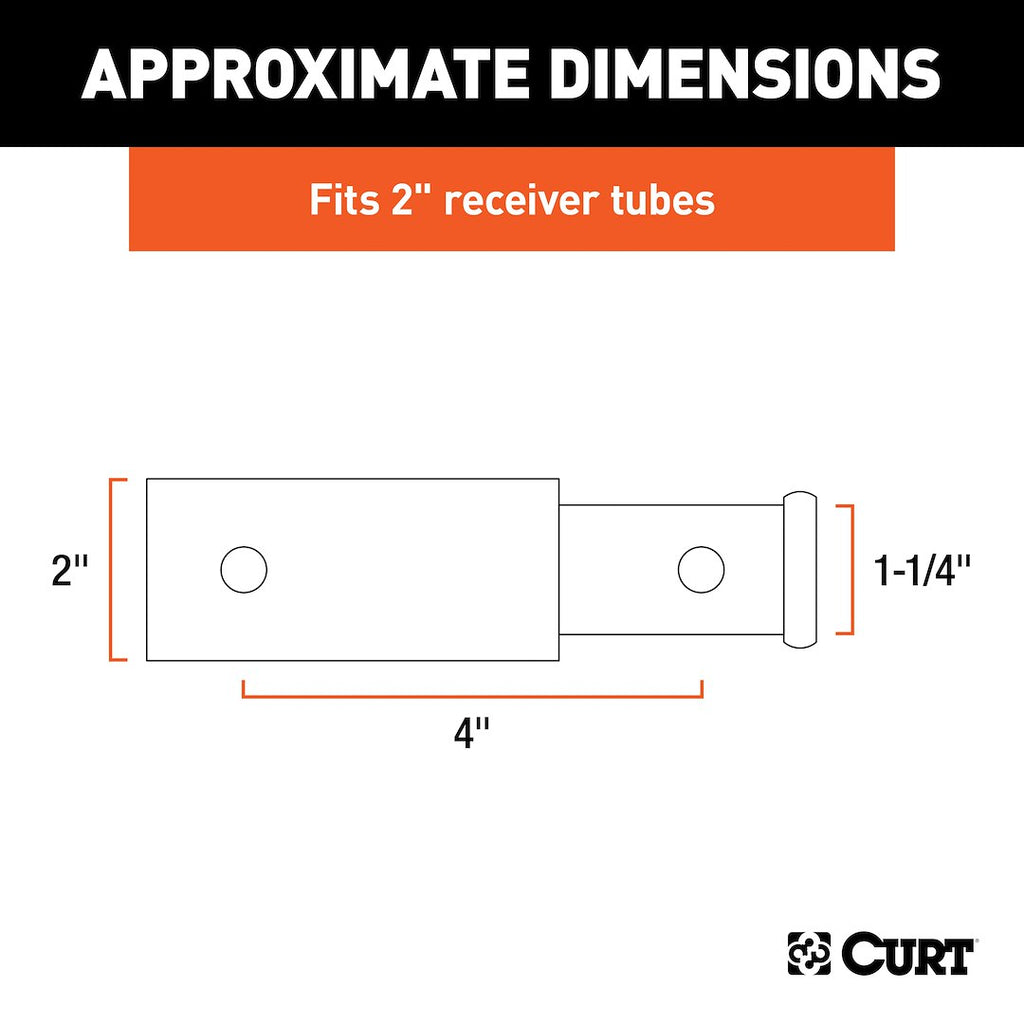 This trailer hitch receiver tube adapter is designed to convert a 2-inch receiver to accommodate a 1-1/4 inch shank, providing versatility for various towing needs. With a length of 4 inches, it offers additional clearance for bumpers or spare tires, making it a practical solution for your towing requirements.