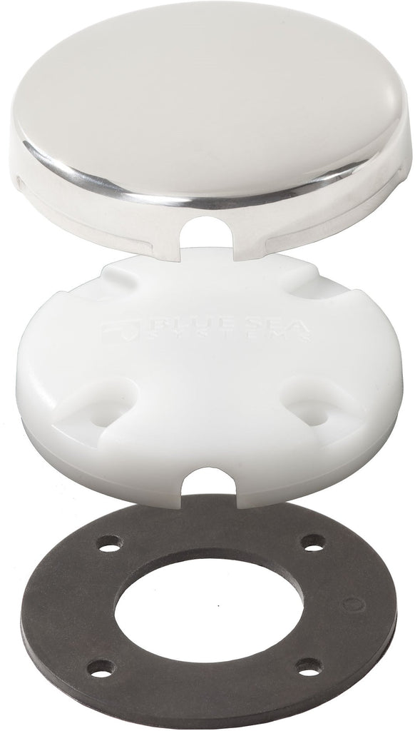 - Polished stainless steel dress cap conceals mounting hardware and complements other deck fittings