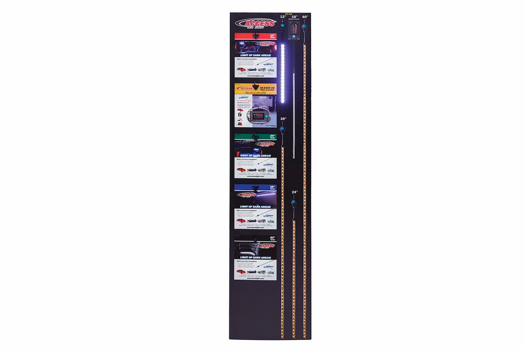 The Access LED Light Display is designed to brighten up even the darkest areas with its waterproof LED strip lights. This 12-inch display is perfect for a variety of applications, including boats, RVs, trailers, and storage compartments. With a strong 3M adhesive backing, installation is quick and straightforward, making it an efficient lighting solution for any environment.