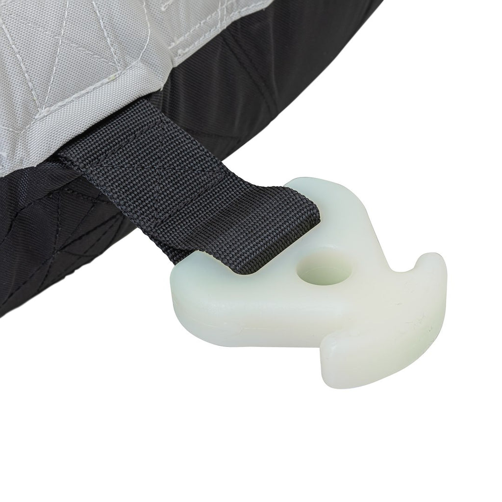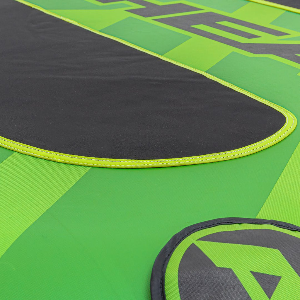 The Airhead Flyer Towable Tube is designed for exhilarating water fun, accommodating 1 to 3 riders with its spacious 80-inch diameter. This inflatable deck tube features a durable nylon cover and is equipped with multiple foam handles and knuckle guards, allowing for various riding positions and enhanced safety. The innovative design includes EVA foam body pads for added comfort, making it a reliable choice for exciting rides across the water.
