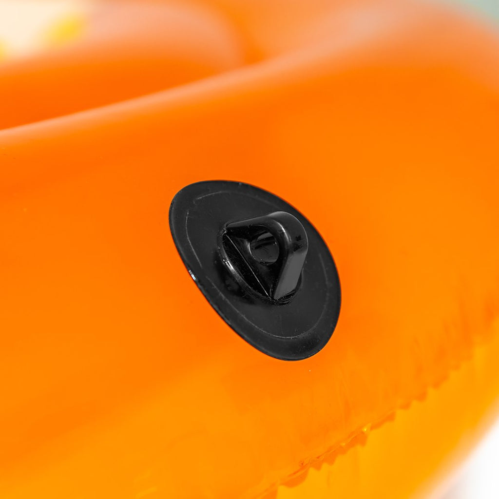 The Airhead Llama Pixelated Pool Float combines style and functionality for a memorable pool experience. Measuring 62 inches when deflated, this vibrant orange float features a trendy pixelated llama graphic that draws inspiration from vintage video games. Designed for both comfort and convenience, it includes a cup holder and a patented speed safety valve for quick inflation and deflation.