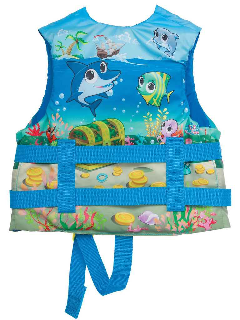 The Airhead Personal Floatation Device is designed specifically for children, ensuring safety and comfort while enjoying water activities. This life vest accommodates chest sizes from 22 inches to 25 inches and is suitable for children weighing between 30 to 50 pounds. With its vibrant tropical design featuring friendly ocean creatures, this life jacket not only promotes safety but also encourages children to engage with water activities.