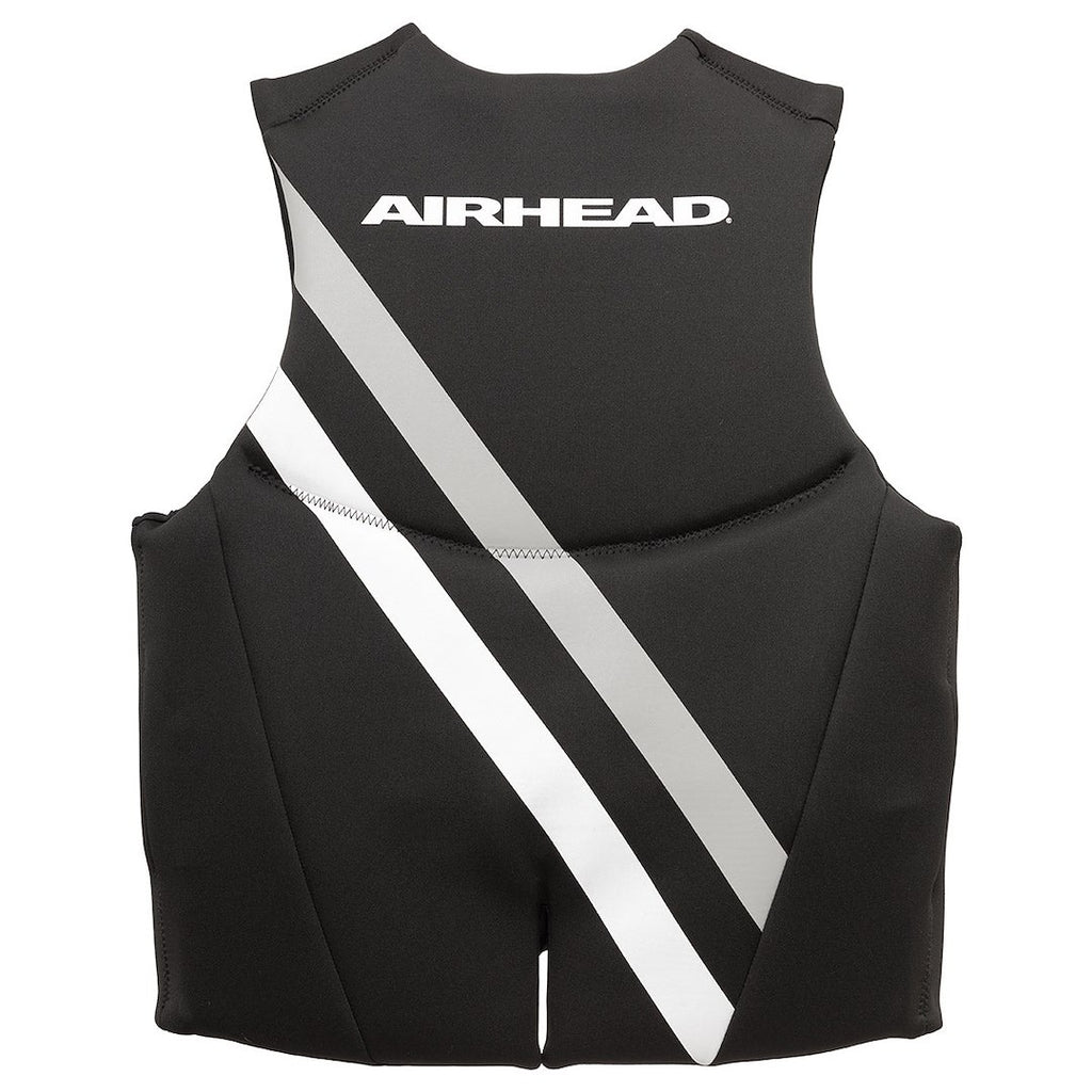 The Airhead Personal Floatation Device (PFD) is designed to provide safety and comfort during various water activities. This U.S. Coast Guard approved life vest features a stylish black, grey, and white design, making it suitable for both casual and active use on the water. Constructed with a Kwik-Dry NeoLite shell, this vest ensures quick drying and durability, making it an essential accessory for your summer adventures.