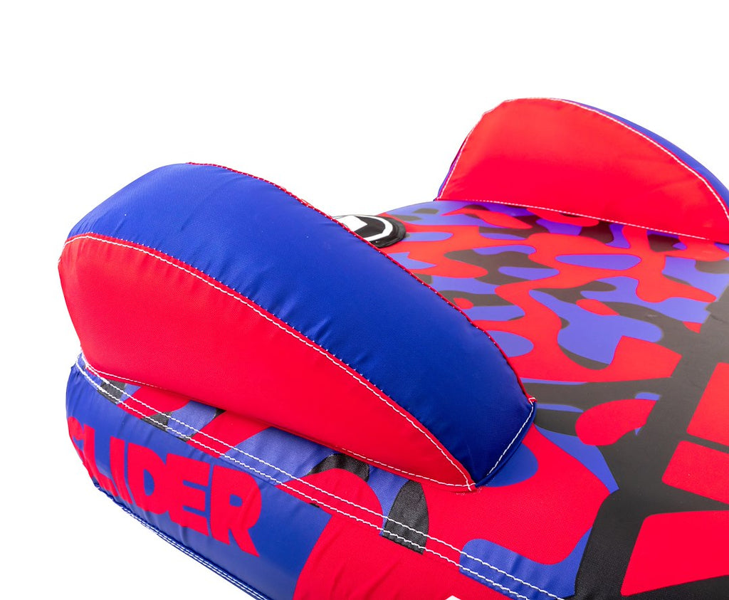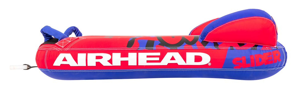 The Airhead Towable Tube is designed for thrilling water adventures, accommodating one rider with its robust rectangular shape. Constructed from heavy gauge PVC, this tube ensures durability and ease of use, making it a reliable choice for water sports enthusiasts. The vibrant blue and red design adds a splash of color to your summer activities.