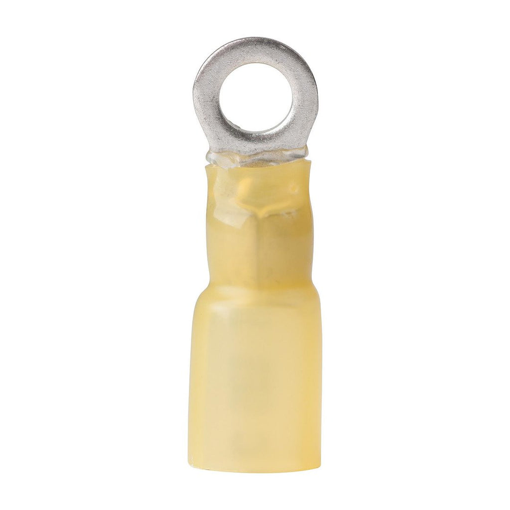 The Ancor 01-9937 Wire Terminal End is designed for secure and efficient electrical connections. This #10 ring terminal is suitable for 12-10 gauge wire and features tinned copper construction with heat shrink insulation, ensuring a robust and water-tight seal when activated by heat. With certifications from UL, CSA, and CE, this product meets high safety and quality standards.