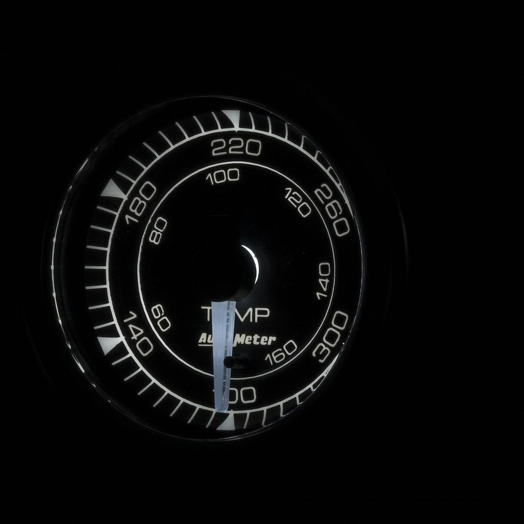 The AutoMeter 8140 Oil Temperature Gauge is designed to provide accurate readings of oil temperatures ranging from 140 to 340 degrees Fahrenheit. This full sweep electric gauge features a sleek black face with an anodized bezel and an orange needle, ensuring clear visibility and style in any custom dashboard setup.