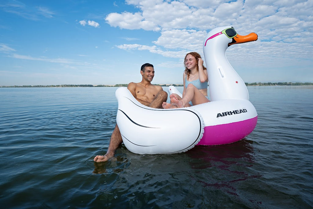 The Cool Swan Inflatable Pool Float is designed for leisure and enjoyment in the water. Measuring 70 inches when deflated, this float is constructed from heavy gauge PVC, ensuring both durability and ease of use. With its innovative design, it features dual molded handles and a convenient cup holder, making it a practical choice for poolside relaxation.