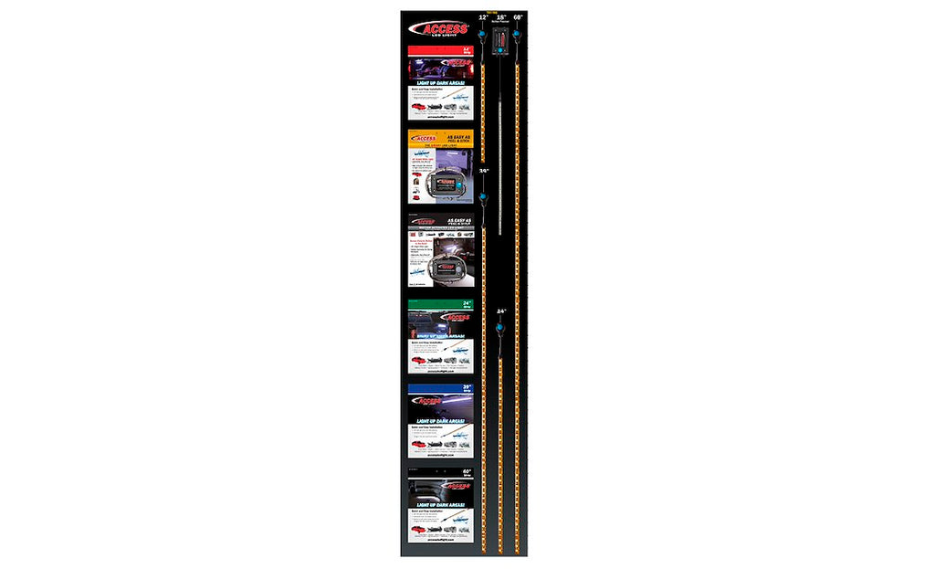 This LED Light Display from ACCESS Covers is designed to brighten up the darkest areas with its waterproof LED strip lights. Featuring a strong 3M adhesive, it allows for quick and easy installation on a variety of surfaces. The display can be powered by three AA batteries or a 12 Volt power source, making it suitable for numerous applications including boats, RVs, trailers, and more.