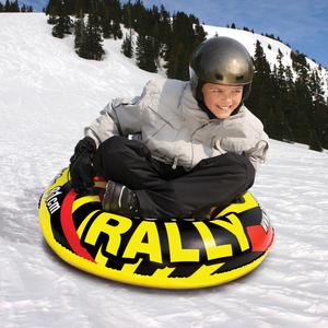 The Rally Snow Tube by Airhead is designed for exhilarating winter fun. With a robust round shape and a maximum capacity of 170 pounds, this snow tube is perfect for solo riders looking to conquer the slopes. Its vibrant red, black, and yellow design ensures visibility while you glide down your favorite sledding hill.