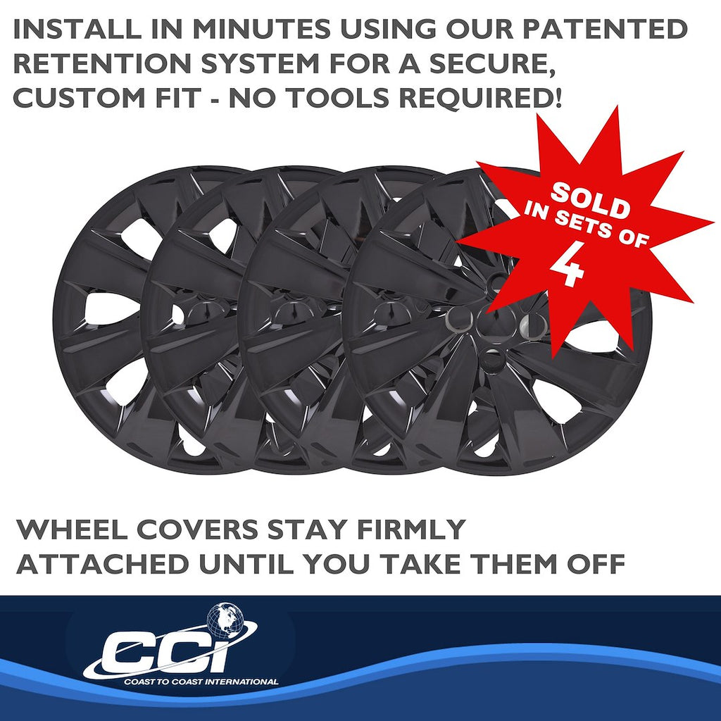 This set of 15 inch gloss black wheel covers offers a practical and stylish solution for replacing lost or worn factory OEM wheel covers. Designed to fit over steel wheels, these covers provide an easy way to refresh your vehicle's look without the expense of new wheels.