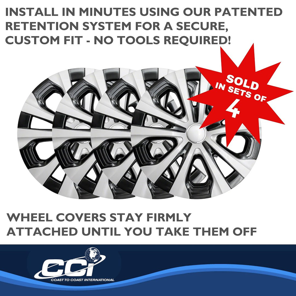 This set of 15 inch wheel covers features a stylish 5 split spoke design in silver and charcoal, providing a cost-effective solution for replacing lost or worn factory wheel covers. Made from high-quality automotive grade materials, these covers are designed to fit steel wheels while emulating original equipment manufacturer (OEM) styling.