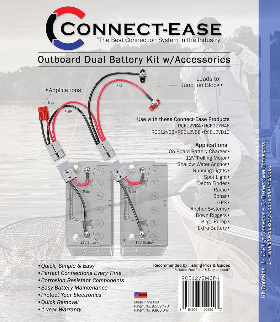 - Enables connection of two batteries to an outboard motor for extended runtime