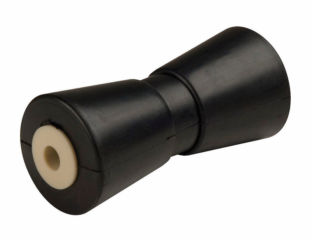 The C.E. Smith Company Trailer Boat Roller is designed for optimal performance and longevity. This keel roller, made from high-quality black natural rubber, measures 3-3/8 inches in diameter and 7-7/8 inches in length. It is engineered to fit standard brackets and shaft sizes, making it a versatile choice for various boat trailers.