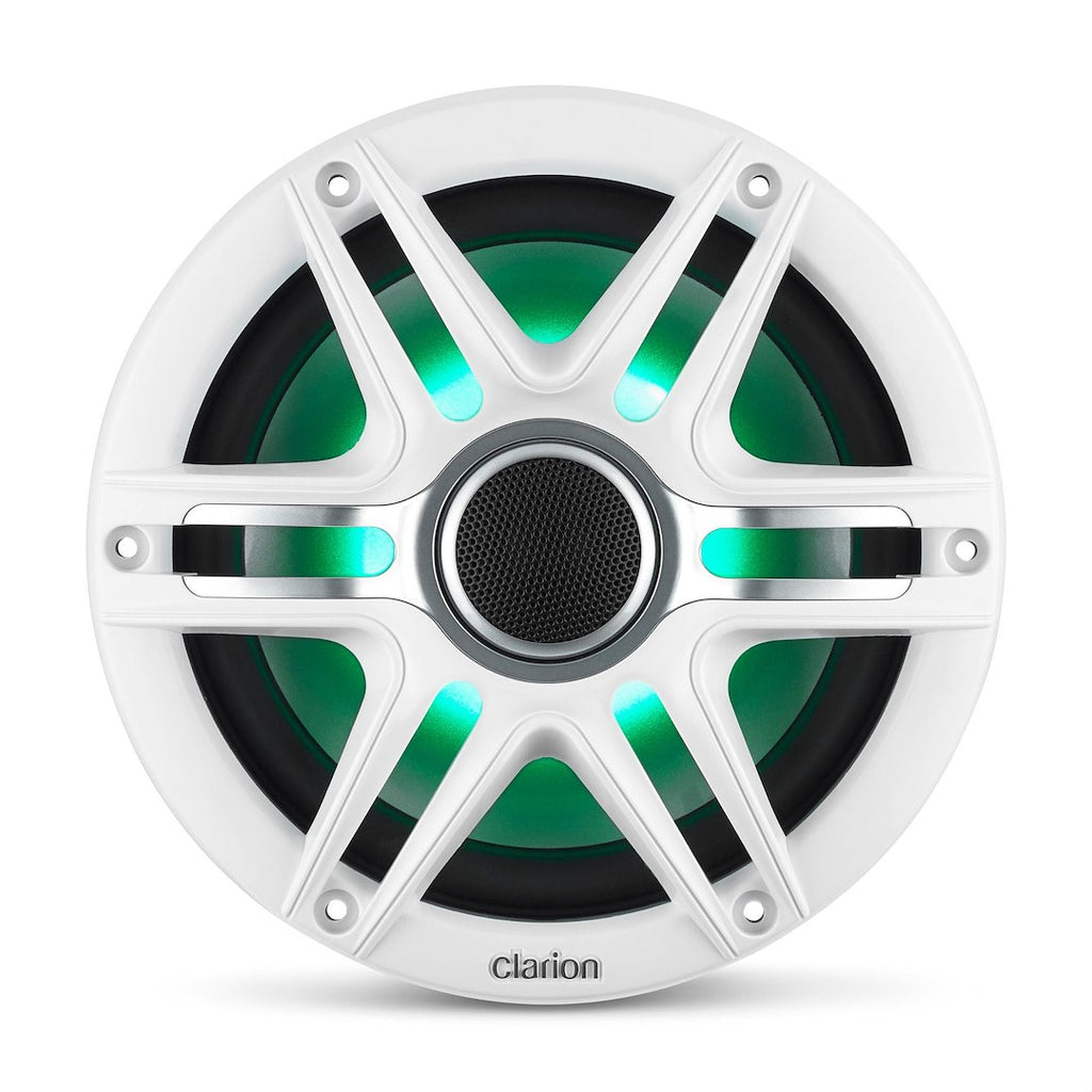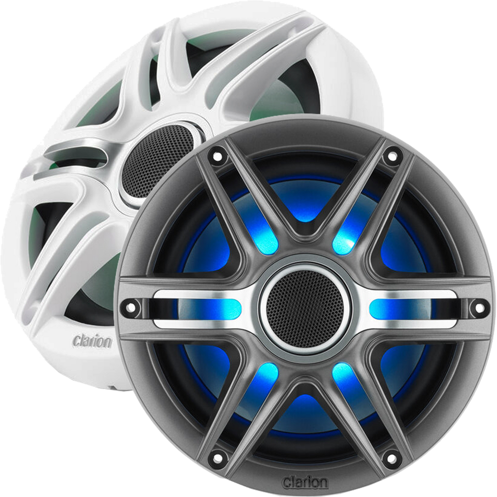 The Clarion 92621 Marine Coaxial Speakers deliver exceptional audio performance tailored for marine applications. Designed to withstand harsh conditions, these 7.7-inch speakers feature built-in RGB LED illumination and are constructed with durable materials to ensure longevity on the water.