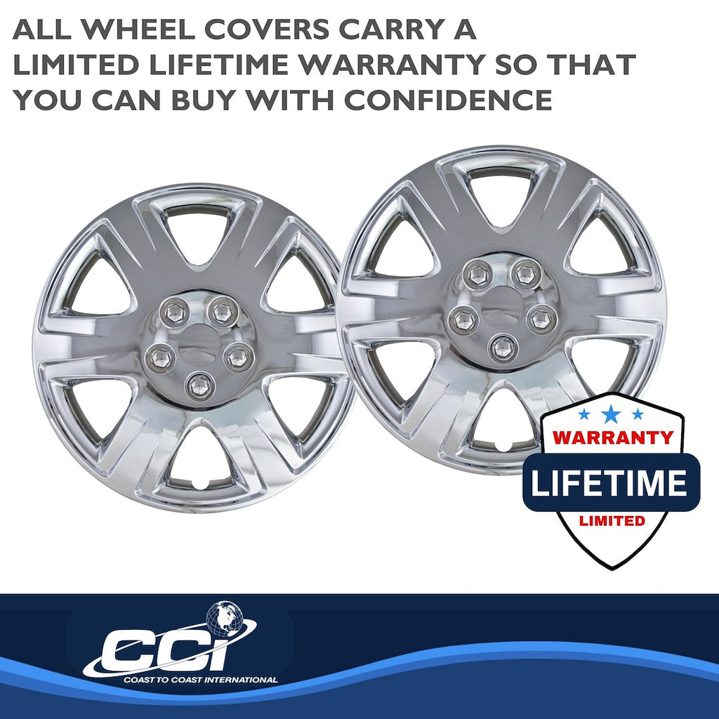 The Coast To Coast 15 Inch Wheel Cover Set offers a practical and stylish solution for replacing lost or worn factory wheel covers. Designed to fit steel wheels, these covers emulate original equipment manufacturer (OEM) styling while providing a cost-effective alternative. With a sleek chrome-plated finish, this set of four covers is an excellent choice for vehicle owners looking to refresh their wheels.