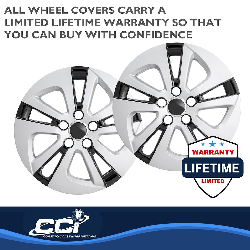 The Coast To Coast 15 Inch Wheel Cover Set offers a practical and stylish solution for replacing lost or damaged factory wheel covers. Designed to fit steel wheels, these covers emulate original equipment manufacturer (OEM) styling while providing a cost-effective alternative. With a sleek black and silver finish, they are suitable for a variety of vehicles.