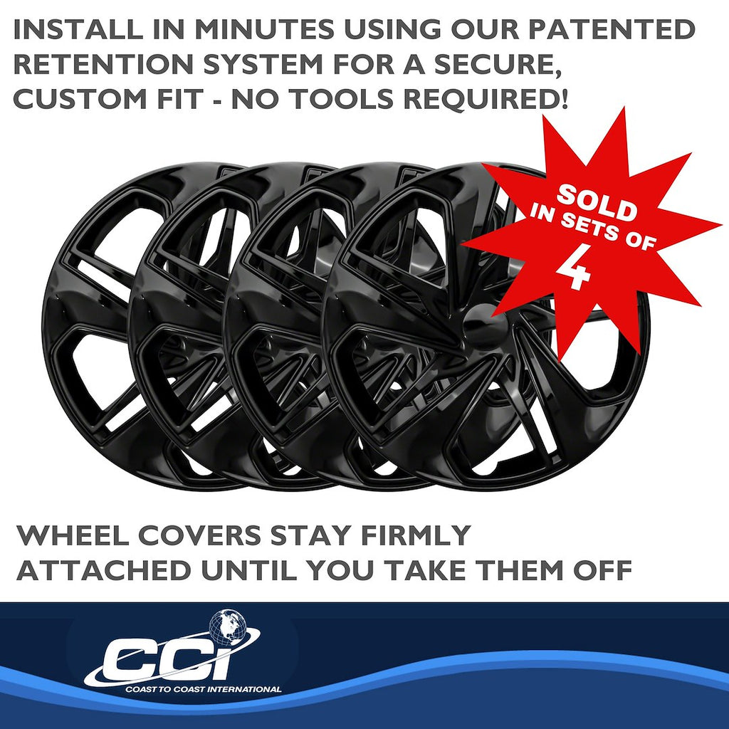 The Coast To Coast 16 Inch Black Wheel Cover Set offers a practical and stylish solution for replacing lost or worn factory wheel covers. Made from high-quality materials, these covers are designed to fit steel wheels while emulating the original equipment manufacturer (OEM) styling, providing an affordable way to refresh your vehicle's look.