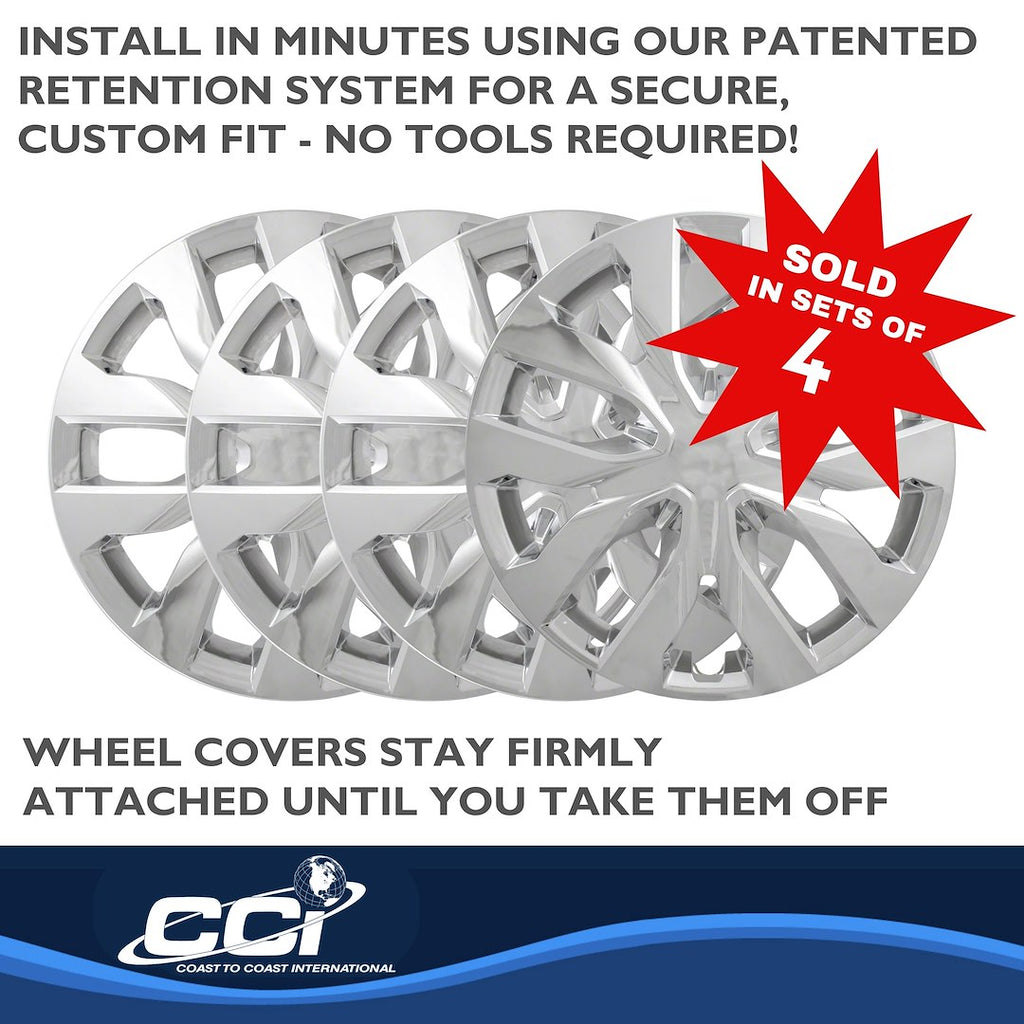 The Coast To Coast 17 Inch Wheel Cover Set offers a practical and stylish solution for replacing lost or damaged factory wheel covers. Designed to fit steel wheels, these covers emulate original equipment manufacturer (OEM) styling while providing a cost-effective alternative. With a sleek chrome-plated finish, this set of four wheel covers is an excellent choice for vehicle owners looking to refresh their wheels.