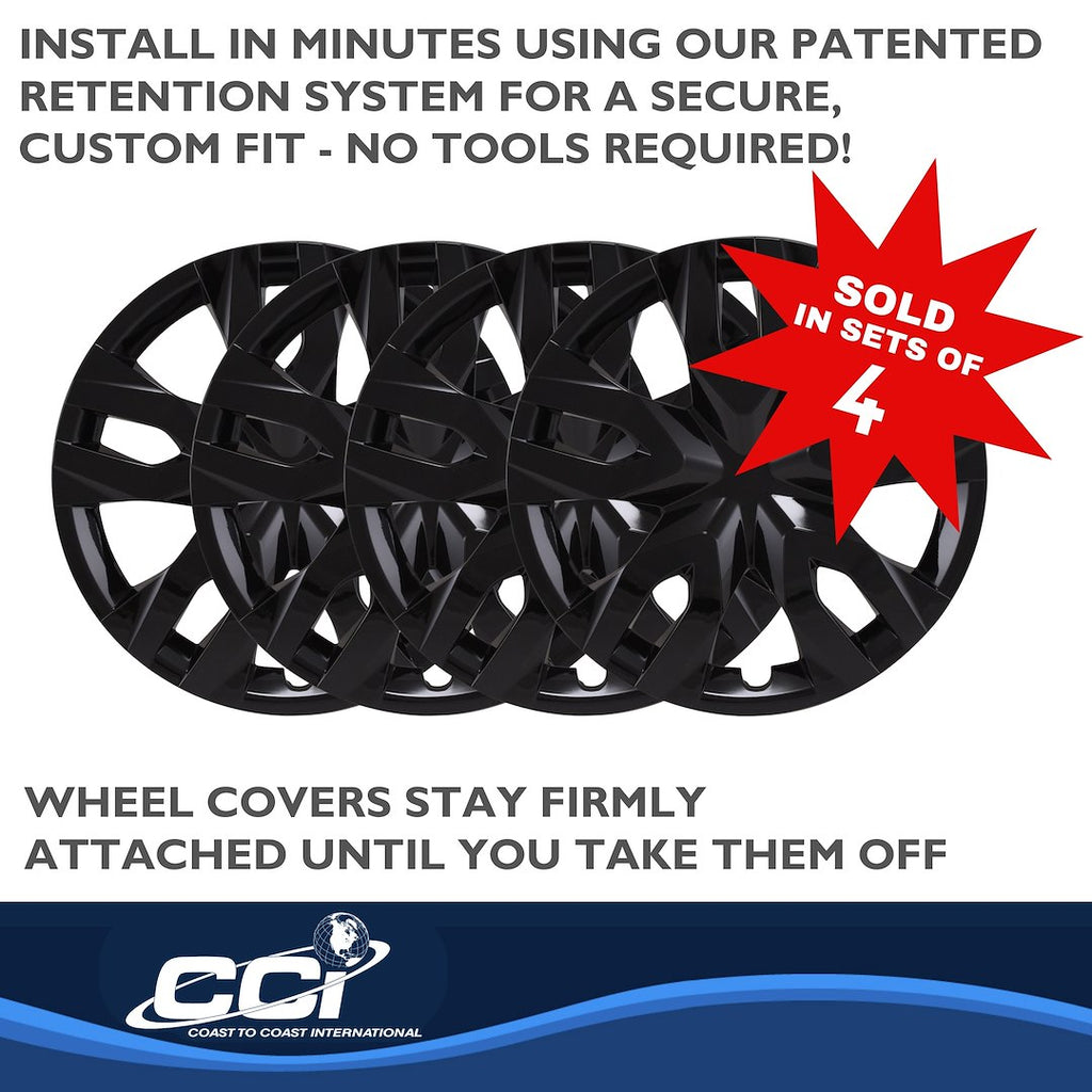 The Coast To Coast 17 Inch Wheel Cover Set offers a practical and stylish solution for replacing lost or damaged factory wheel covers. Crafted from high-quality automotive grade ABS plastic, these covers are designed to fit steel wheels while emulating the original equipment manufacturer (OEM) styling. With a sleek gloss black finish, they provide an attractive upgrade to your vehicle's look.