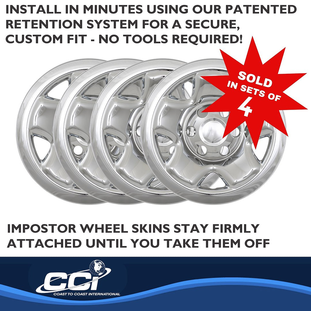 Transform the look of your car, pickup truck, or SUV with the Coast To Coast Impostor Wheel Skins. These 16-inch wheel skins are designed to fit securely over your original wheels, providing a stylish chrome-plated finish that enhances the overall aesthetic of your vehicle.