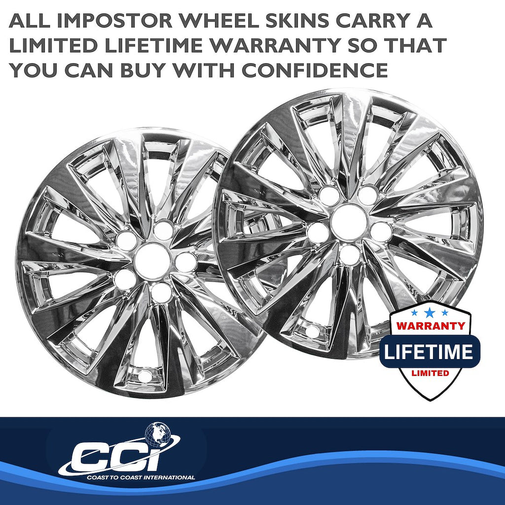 Transform the look of your car, pickup truck, or SUV with the Coast To Coast Impostor Wheel Skins. These 17-inch wheel skins are designed to fit securely over your original wheels, providing a sleek chrome-plated finish that elevates your vehicle's trim level appearance. Made from high-quality automotive grade ABS plastic, these wheel skins are both durable and easy to install, making them a practical choice for vehicle enhancement.