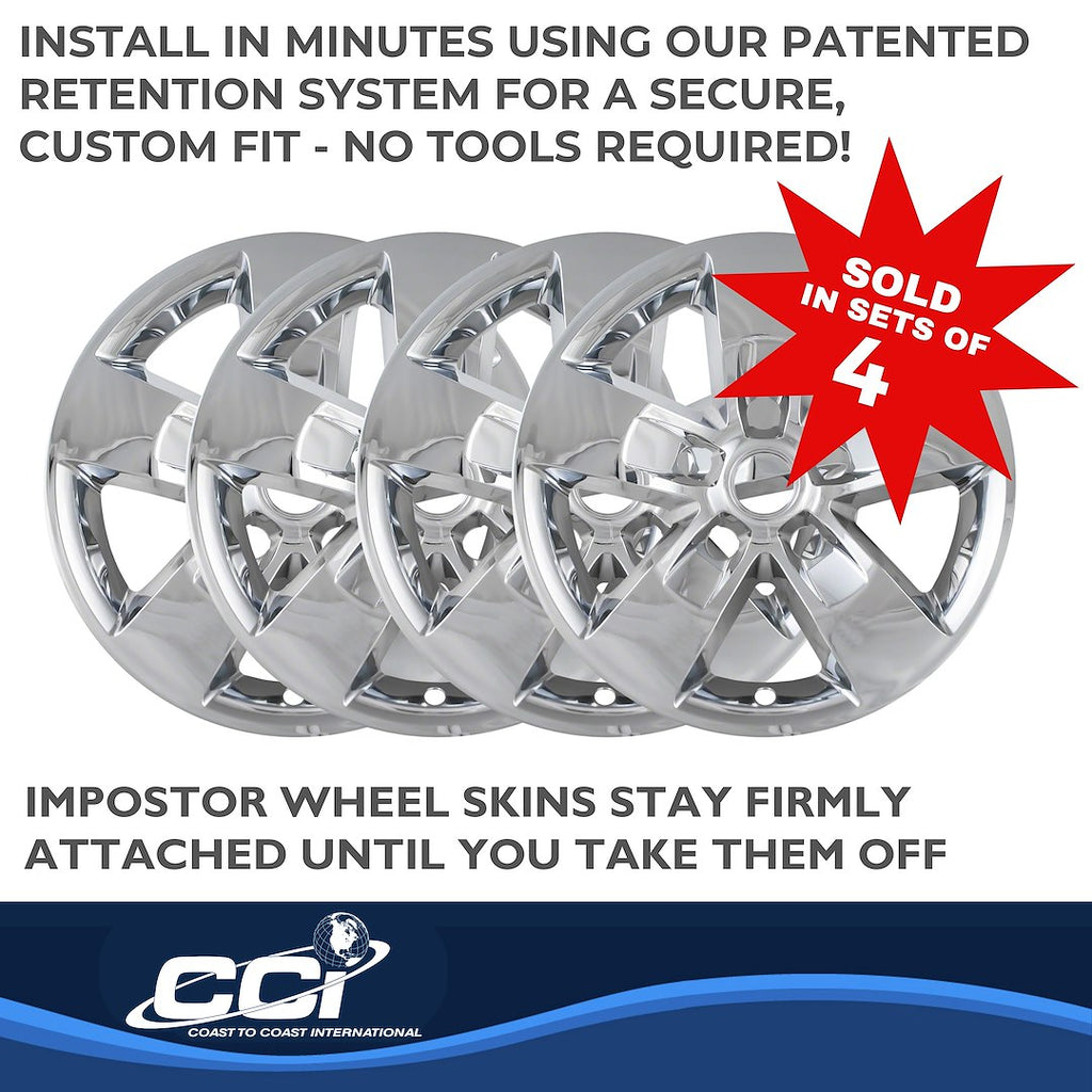 Transform the look of your car, pickup truck, or SUV with the Coast To Coast Impostor Wheel Skin. Designed for a seamless fit, these wheel skins provide an economical way to elevate your vehicle's trim level appearance. Crafted from high-quality automotive grade ABS plastic, they are built to last and maintain their shine.