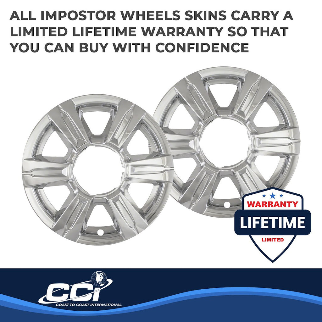Transform the look of your car, pickup truck, or SUV with the Coast To Coast Impostor Wheel Skins. These 17-inch wheel skins are designed to fit securely over your original wheels, providing a sleek chrome-plated finish that elevates your vehicle's trim level appearance. Made from high-quality automotive grade ABS plastic, these wheel skins are both durable and easy to install, making them a practical choice for vehicle customization.