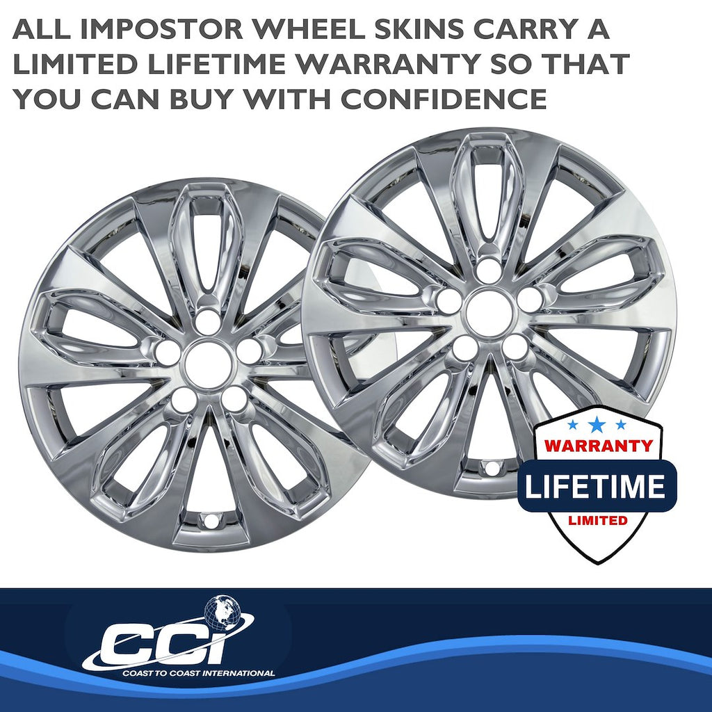 Transform the look of your car, pickup truck, or SUV with the Coast To Coast Impostor Wheel Skins. These 18-inch wheel skins are designed to fit securely over your original wheels, providing a stylish chrome-plated finish that enhances your vehicle's trim level appearance. Made from high-quality automotive grade ABS plastic, these wheel skins are both durable and easy to install, making them a practical choice for vehicle customization.