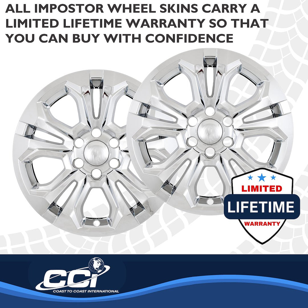 The Coast To Coast Impostor Wheel Skin is designed to transform the look of your car, pickup truck, or SUV effortlessly. Made from high-quality automotive grade ABS plastic, these wheel skins fit securely over your original wheels, providing a sleek chrome-plated finish that enhances your vehicle's trim level appearance.