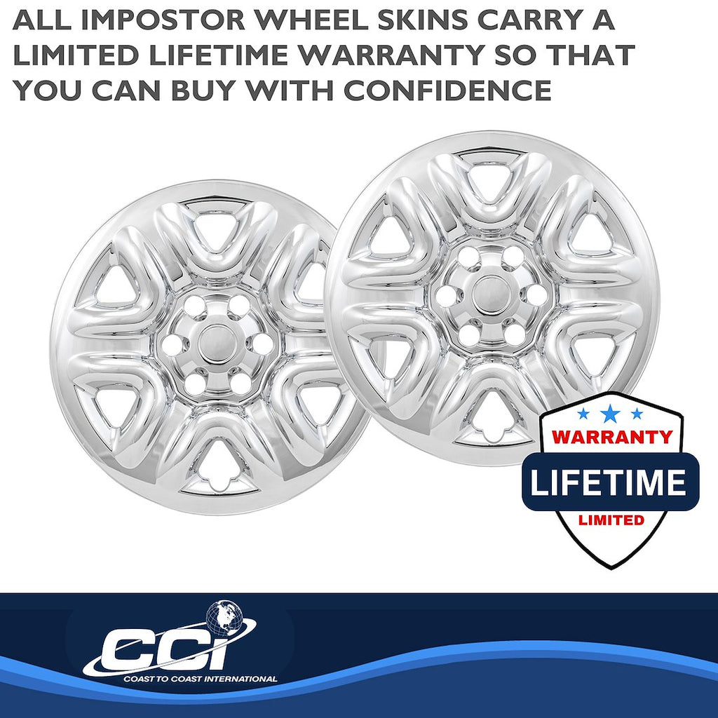 The Coast To Coast Impostor Wheel Skin is designed to transform the look of your car, pickup truck, or SUV effortlessly. Made from high-quality automotive grade ABS plastic, these wheel skins fit securely over your original wheels, providing a sleek chrome-plated finish that enhances your vehicle's trim level appearance.