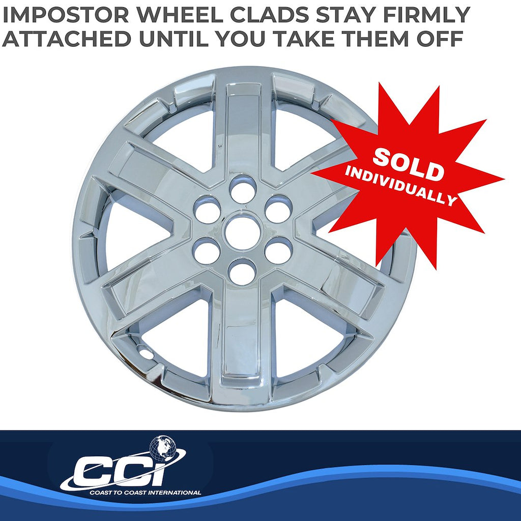 The Coast To Coast Impostor Wheel Skin offers a simple and effective way to transform the look of your car, pickup truck, or SUV. Designed from high-quality automotive grade ABS plastic, these wheel skins fit securely over your original wheels, providing a sleek chrome-plated finish that enhances your vehicle's trim level appearance.