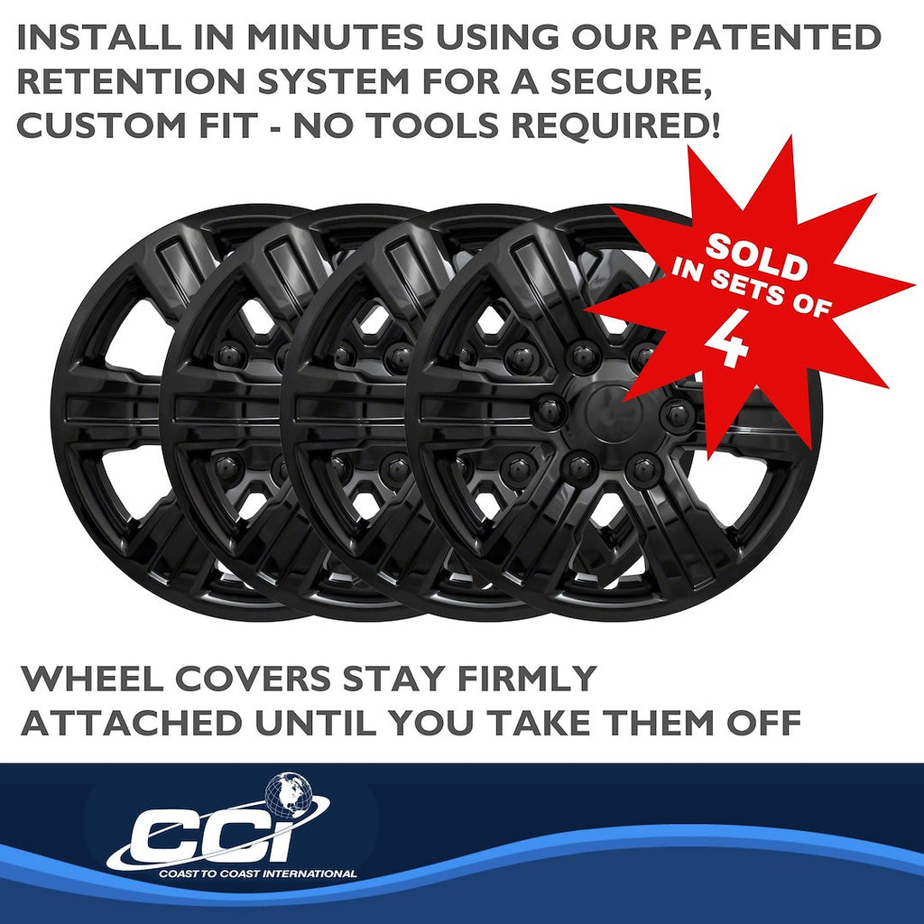The Coast To Coast 54016BLK Wheel Cover set offers a practical and stylish solution for replacing lost or worn factory wheel covers. Designed to fit 16-inch steel wheels, these covers emulate original equipment manufacturer (OEM) styling while providing a cost-effective alternative. Crafted from high-quality ABS plastic, they ensure durability and a sleek look for your vehicle.