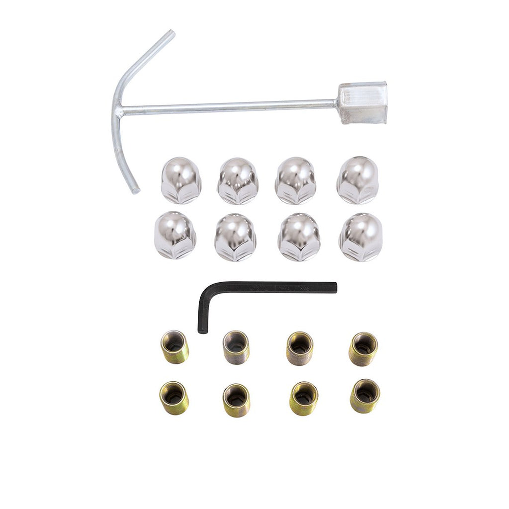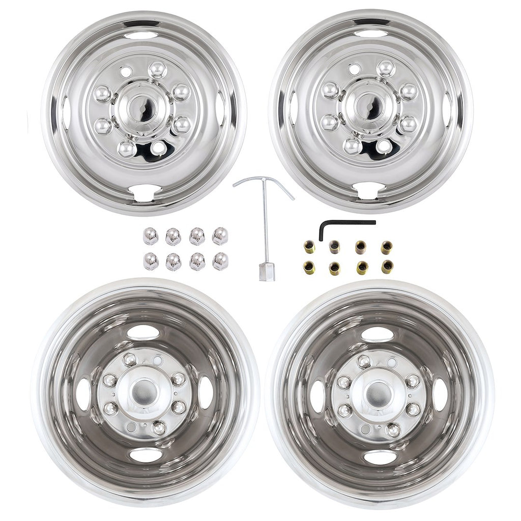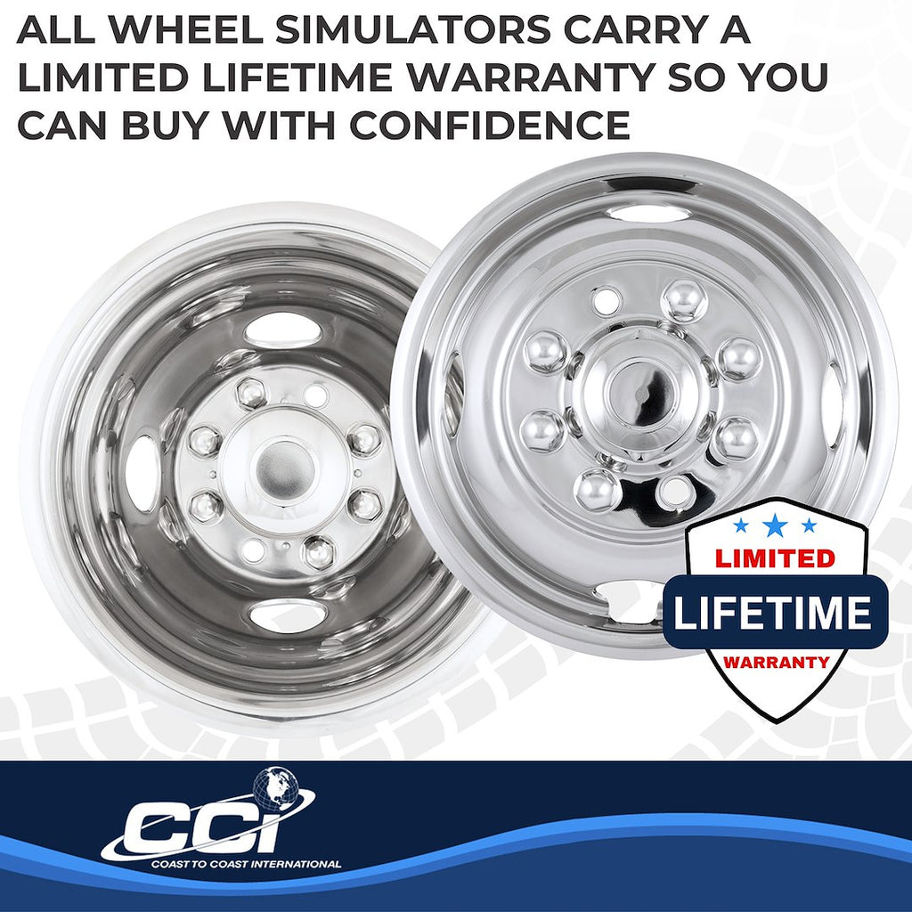 The Coast To Coast Wheel Simulator is designed to fit 16 inch dual rear steel wheels, providing an effective and economical solution to improve the visual appeal of your OEM wheels. This polished stainless steel simulator not only enhances aesthetics but also offers protection against dirt, debris, snow, and ice, ensuring your wheels remain in optimal condition.