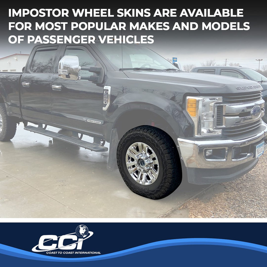 The Coast To Coast IMP470X Wheel Skin offers a simple and effective way to transform the look of your car, pickup truck, or SUV. Designed to fit securely over your original wheels, these wheel skins are made from high-quality automotive grade ABS plastic, ensuring durability and a sleek chrome finish.