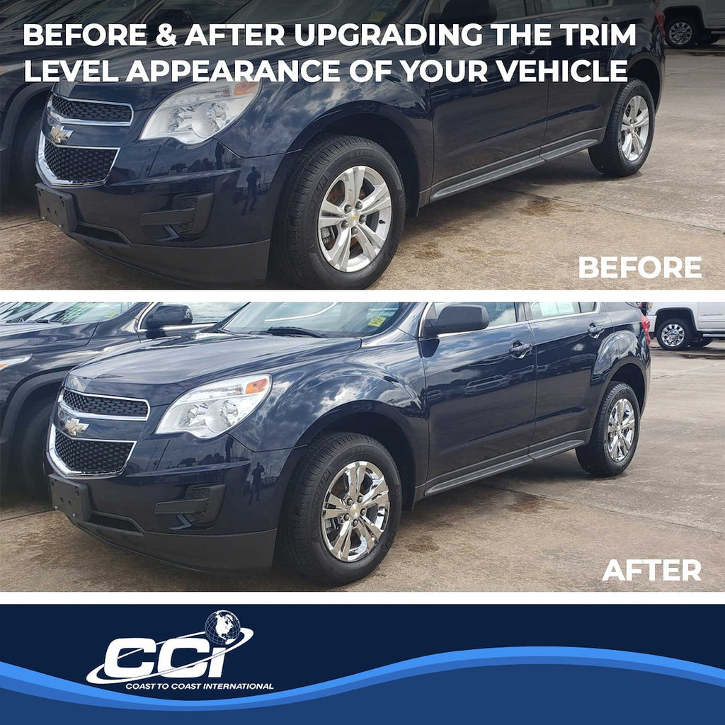 The Coast To Coast IMP360X Wheel Skin offers a simple and effective way to transform the look of your car, pickup truck, or SUV. Designed from high-quality automotive grade ABS plastic, these wheel skins fit securely over your original wheels, providing a sleek chrome-plated finish that enhances your vehicle's trim level appearance.