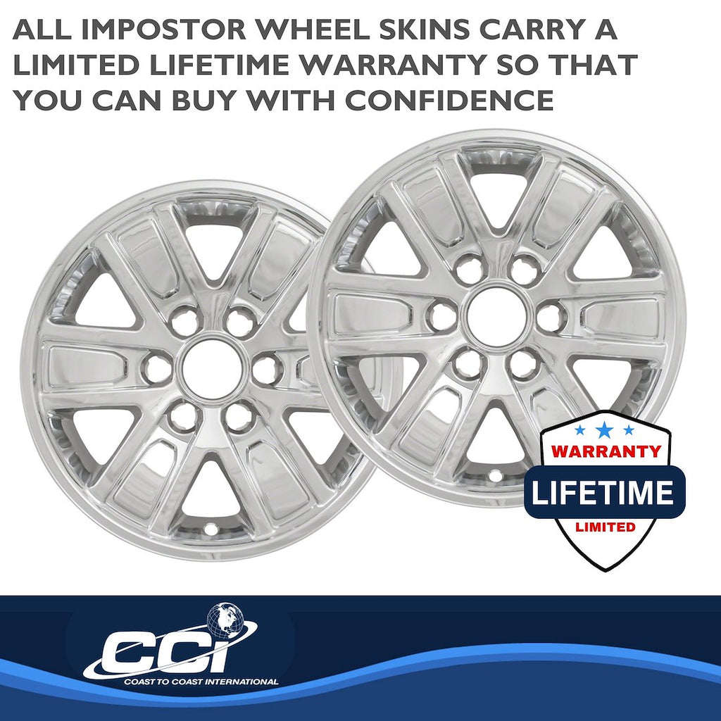 Transform the look of your car, pickup truck, or SUV with the Coast To Coast 72-5640 Wheel Skin. Designed to fit securely over your original wheels, these Impostor wheel skins provide a stylish chrome finish while being easy to install and maintain.