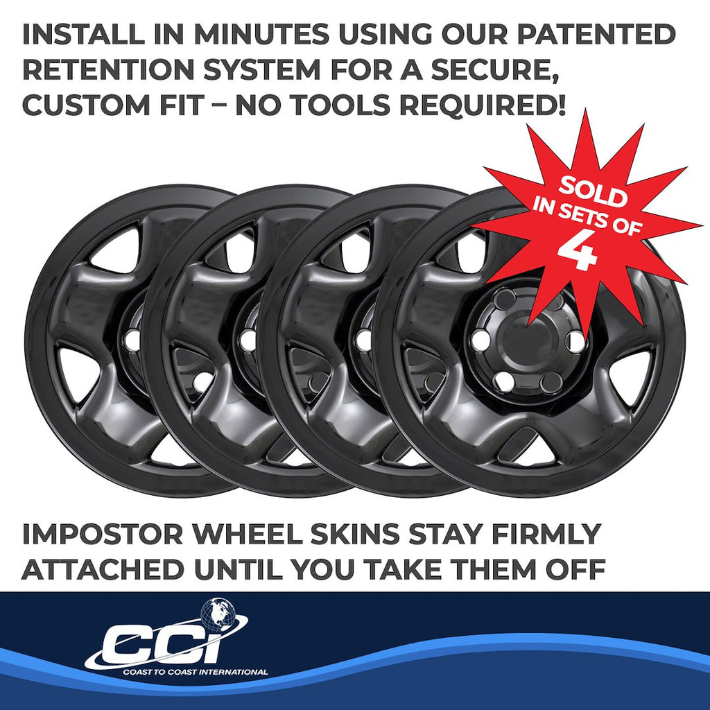 Transform the look of your car, pickup truck, or SUV with the Coast To Coast 72-5652 Wheel Skin. Designed to fit securely over your original wheels, these Impostor wheel skins provide a stylish and economical way to elevate your vehicle's trim level appearance.