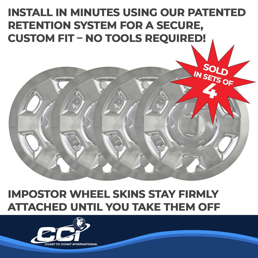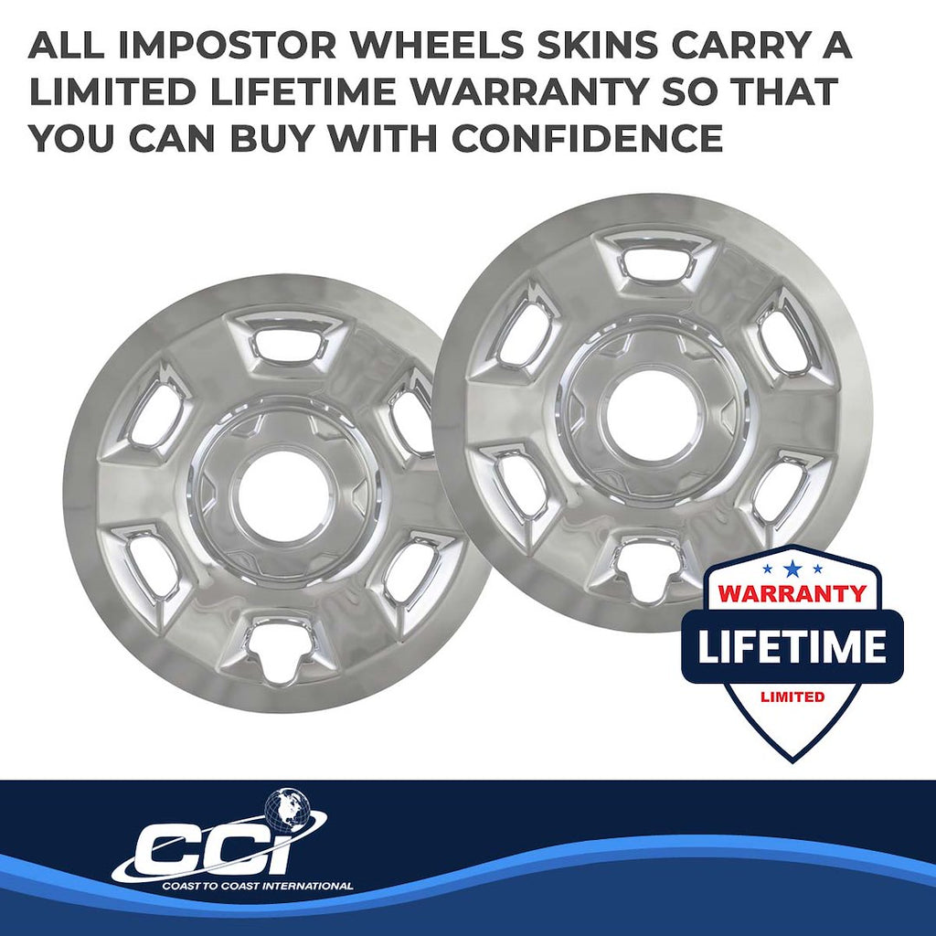 Transform the look of your car, pickup truck, or SUV with the Coast To Coast 72-5665 Wheel Skin. Designed to fit securely over your original wheels, these Impostor wheel skins provide a stylish chrome finish while being easy to install and maintain.