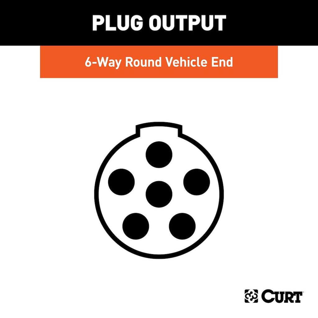 The CURT 6-Way Round Trailer Wiring Connector is engineered to provide a dependable electrical connection for various trailer types. This connector ensures that power flows seamlessly to your trailer's essential functions, including tail lights, turn signals, and electric brakes, enhancing safety during transport.
