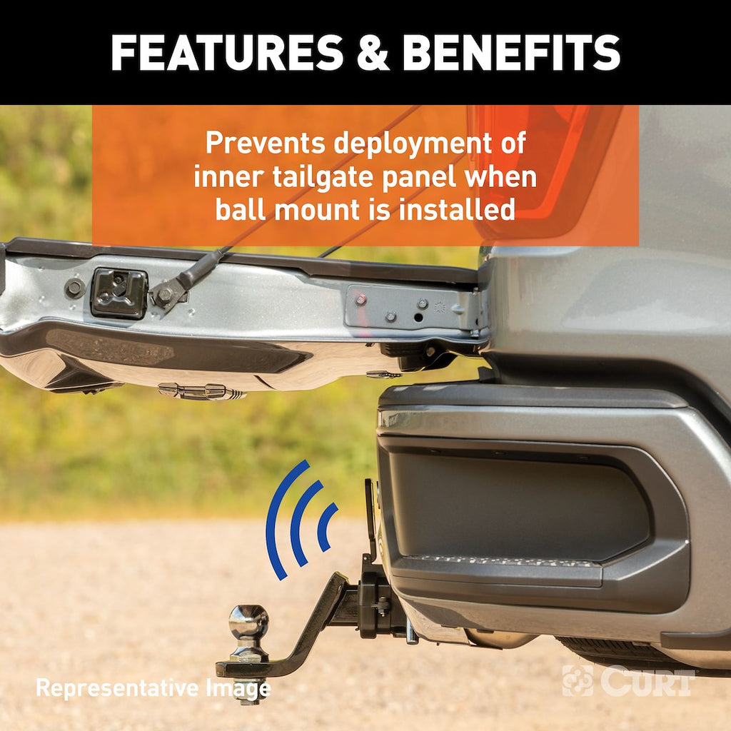 • Prevents deployment of the inner tailgate panel when a ball mount is installed
