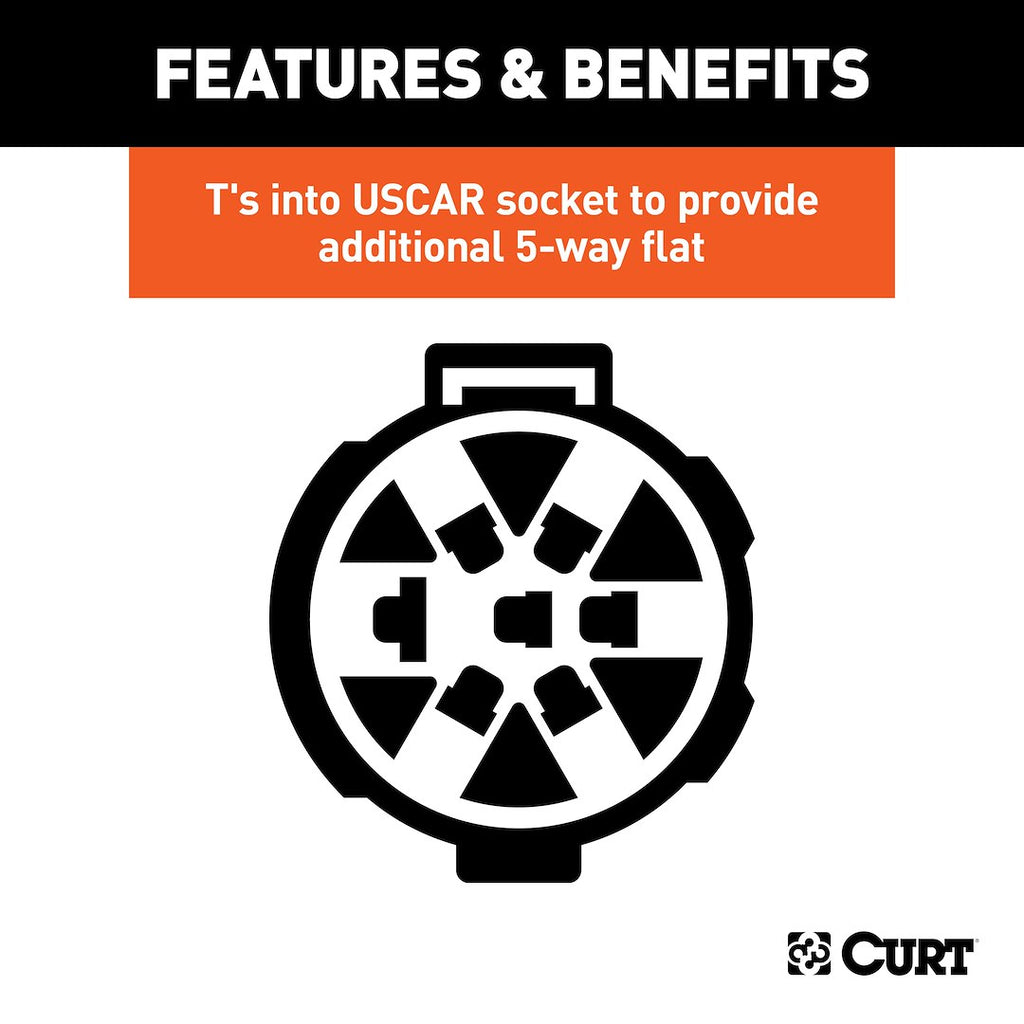- Plugs directly into the existing OEM socket to add a 5-way flat connector while retaining the use of the OEM 7-way connector