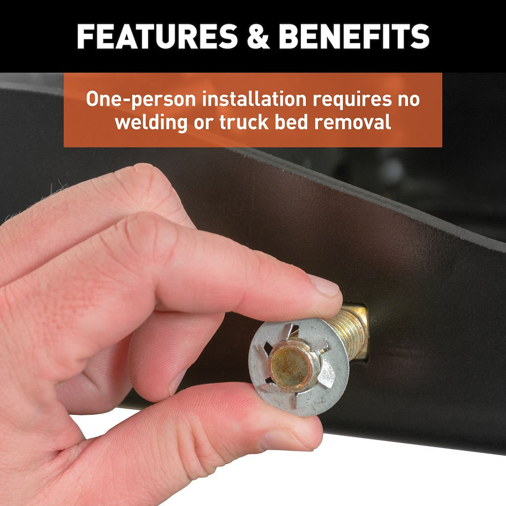 - Flip-and-store ball design keeps the truck bed unobstructed when not in use