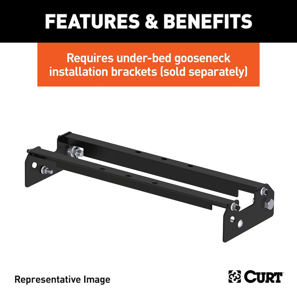 The CURT Gooseneck Trailer Hitch offers a robust solution for towing with a maximum weight capacity of 30,000 pounds. This in-bed hitch features a unique folding ball design that allows for unobstructed use of your truck bed when not in use. The permanently attached ball folds down into a compartment, preventing theft and loss while ensuring a reliable towing connection when needed.