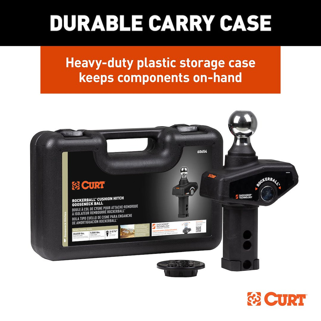 The CURT Gooseneck Trailer Hitch Ball is designed to elevate your towing experience by incorporating innovative ShockDrop technology. This product allows for a smoother and more comfortable ride without the need to replace your entire trailer coupler. Simply install the RockerBall into your gooseneck hitch receiver and experience the immediate benefits of reduced jerking and jarring during towing.