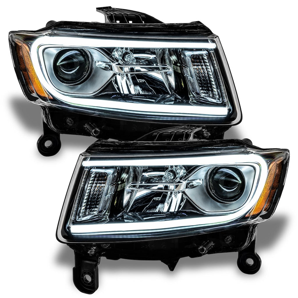 The Oracle Lighting Headlight Assembly features a modern design with LED bulbs and a clear lens, ensuring optimal visibility and safety on the road. This assembly is crafted to meet the durability and quality standards of OEM factory headlights, providing a reliable lighting solution that complies with U.S. Department of Transportation regulations. The black housing adds a sleek aesthetic while the pre-installed ORACLE LED DRL accent strips enhance the overall look of the vehicle.