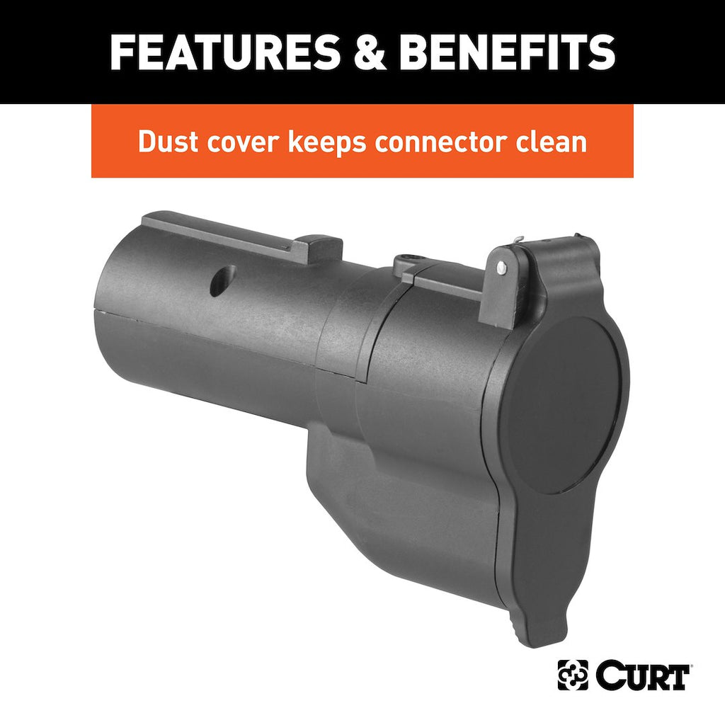 This CURT trailer wiring connector adapter provides a reliable solution for connecting your vehicle's electrical system to your trailer's wiring. Designed to accommodate various connector types, this adapter ensures seamless compatibility between mismatched plugs and sockets, making it an essential accessory for towing applications.