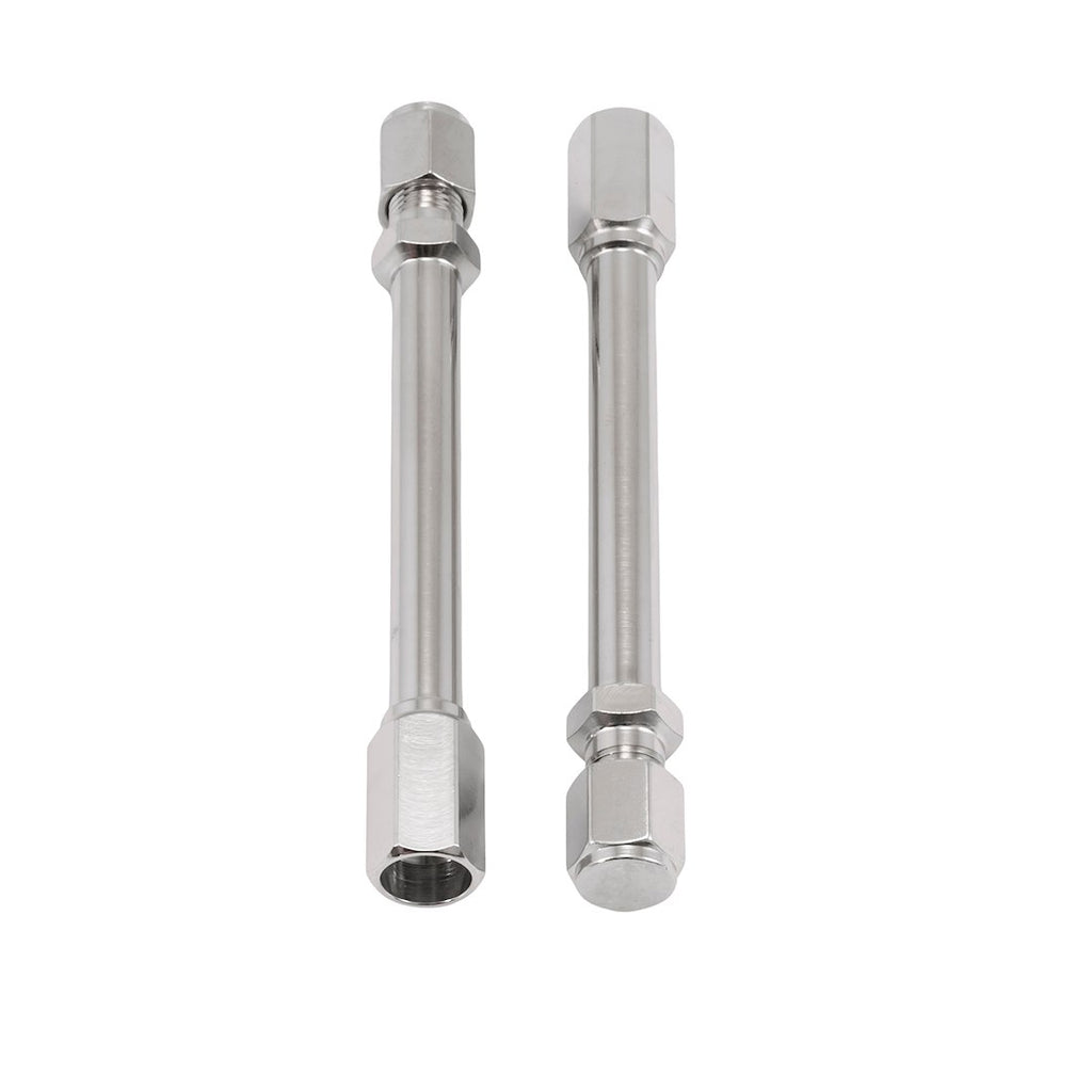 This valve stem extension set is designed to simplify the process of checking and inflating your tires. With a length of 3-1/2 inches, these extensions are suitable for both front and rear tire valves, providing a practical solution for easier access and maintenance.