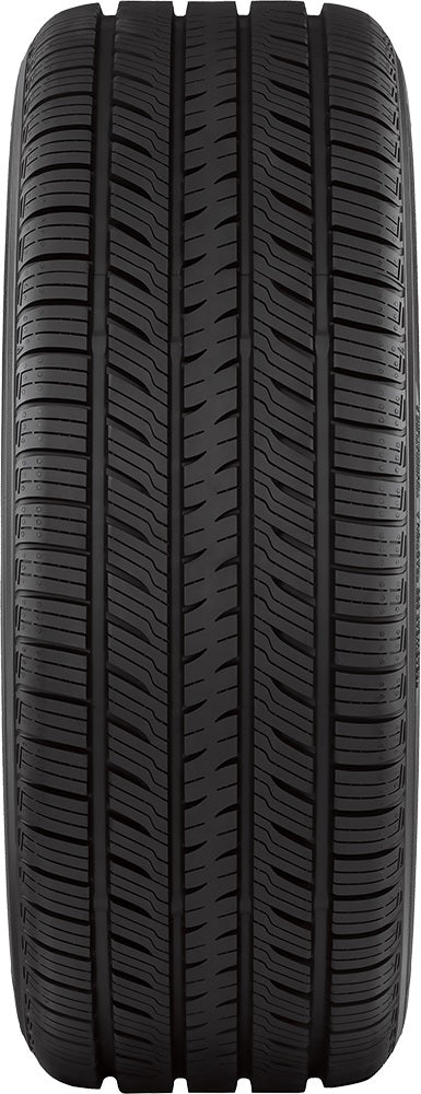 The Yokohama AVID Ascend LX is a touring all-season tire designed for passenger cars, providing exceptional mileage and grip. Engineered with an asymmetrical tread design, this tire features four wide circumferential grooves that enhance wet braking performance, ensuring safety in various driving conditions. The notched intermediate ribs and wavy 3D shoulder sipes deliver strong grip, making it suitable for worry-free driving even in wintry weather.
