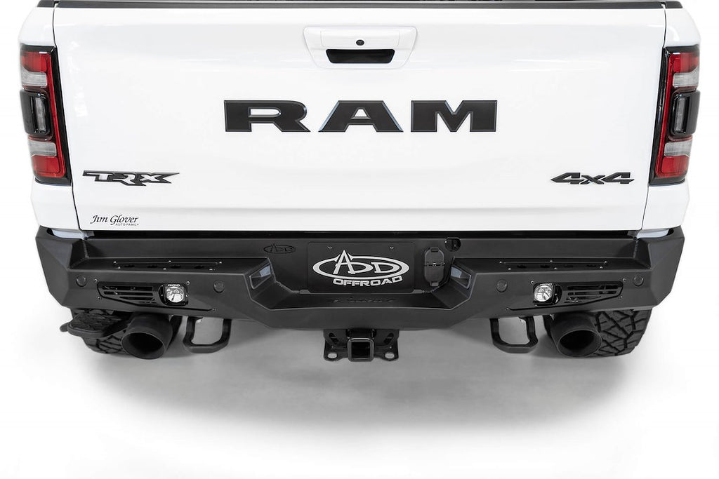 The Addictive Desert Designs Bomber Rear Bumper combines modern design with practical functionality, specifically engineered for the TRX model. This one-piece bumper features a low-profile plate steel construction that seamlessly follows the truck's body lines, ensuring a perfect fit. With integrated mounts for two rear-facing cube lights, this bumper enhances visibility while retaining all essential OEM features.