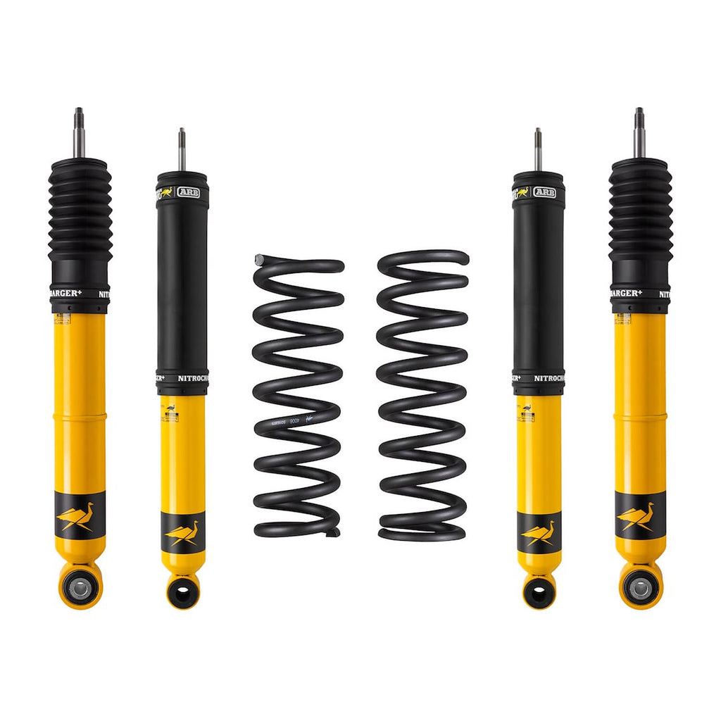 The ARB Leveling Kit Suspension is designed to provide a 1-inch lift for improved ride quality and control. This integrated suspension system includes front coil springs and both front and rear Nitro shock absorbers, ensuring optimal performance for various vehicle setups and conditions.